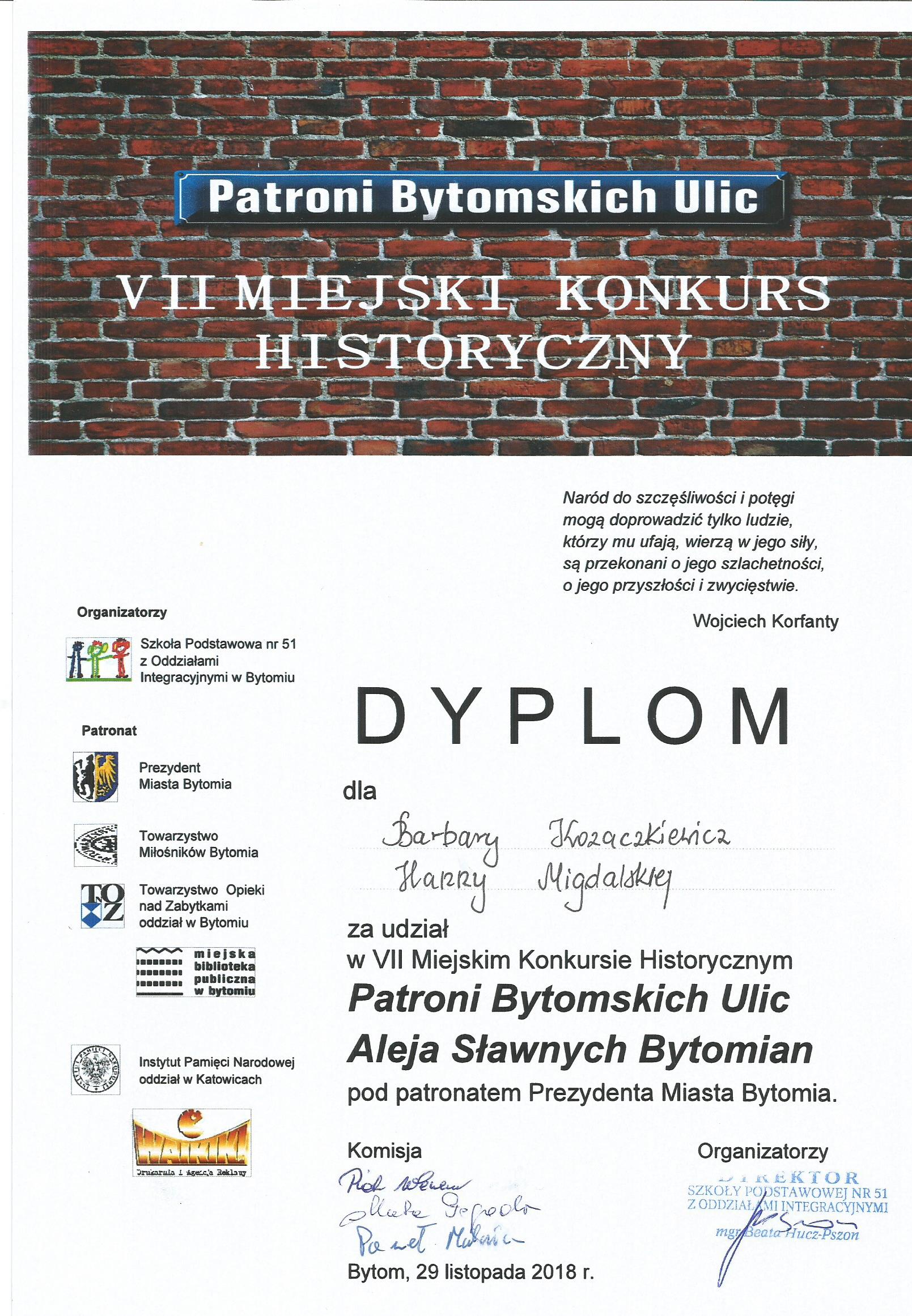 Dyplom dla Izabeli Zogbaum